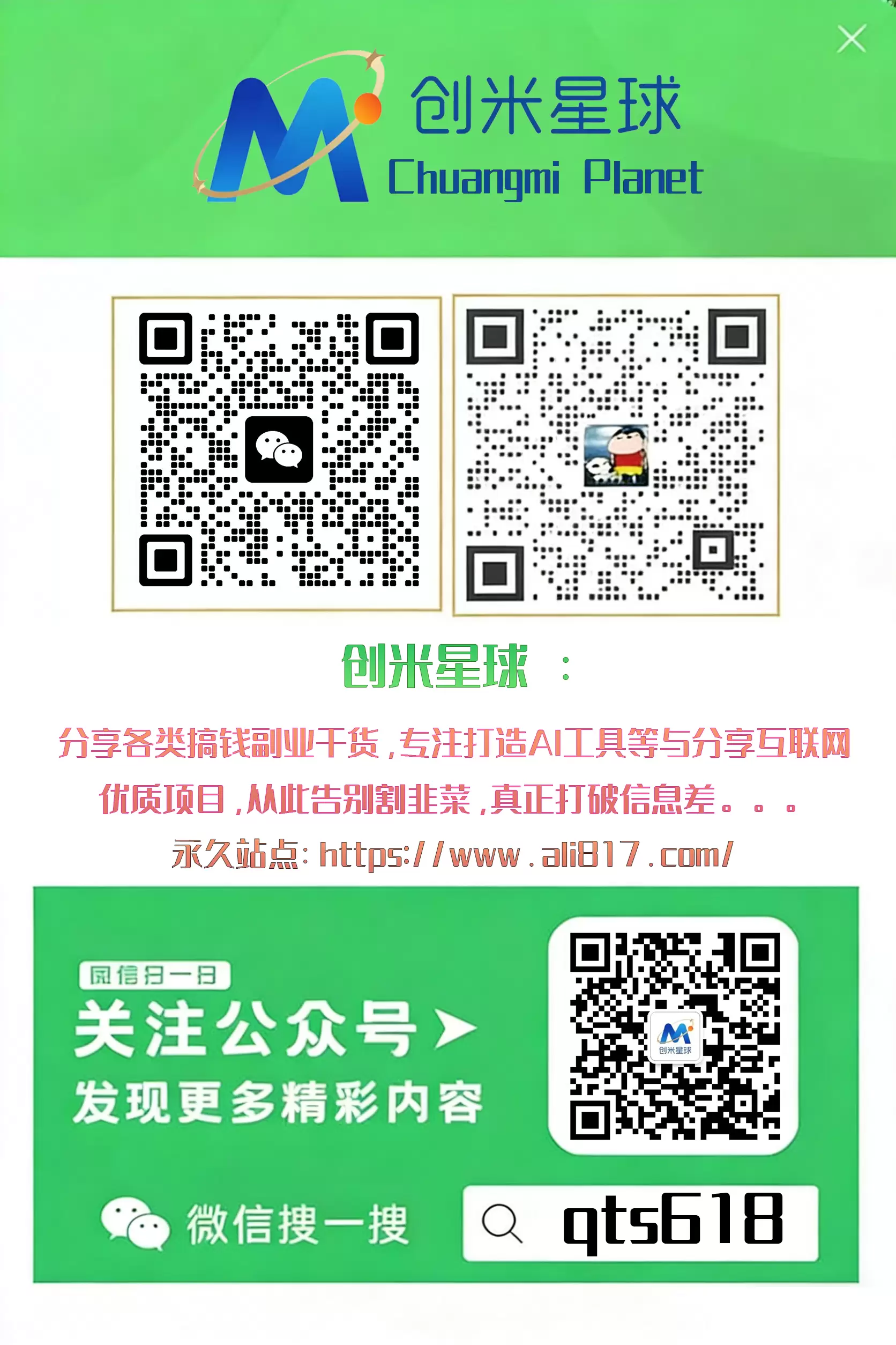 关注公众号:创米星球(或添加 站长微信:qts618)
